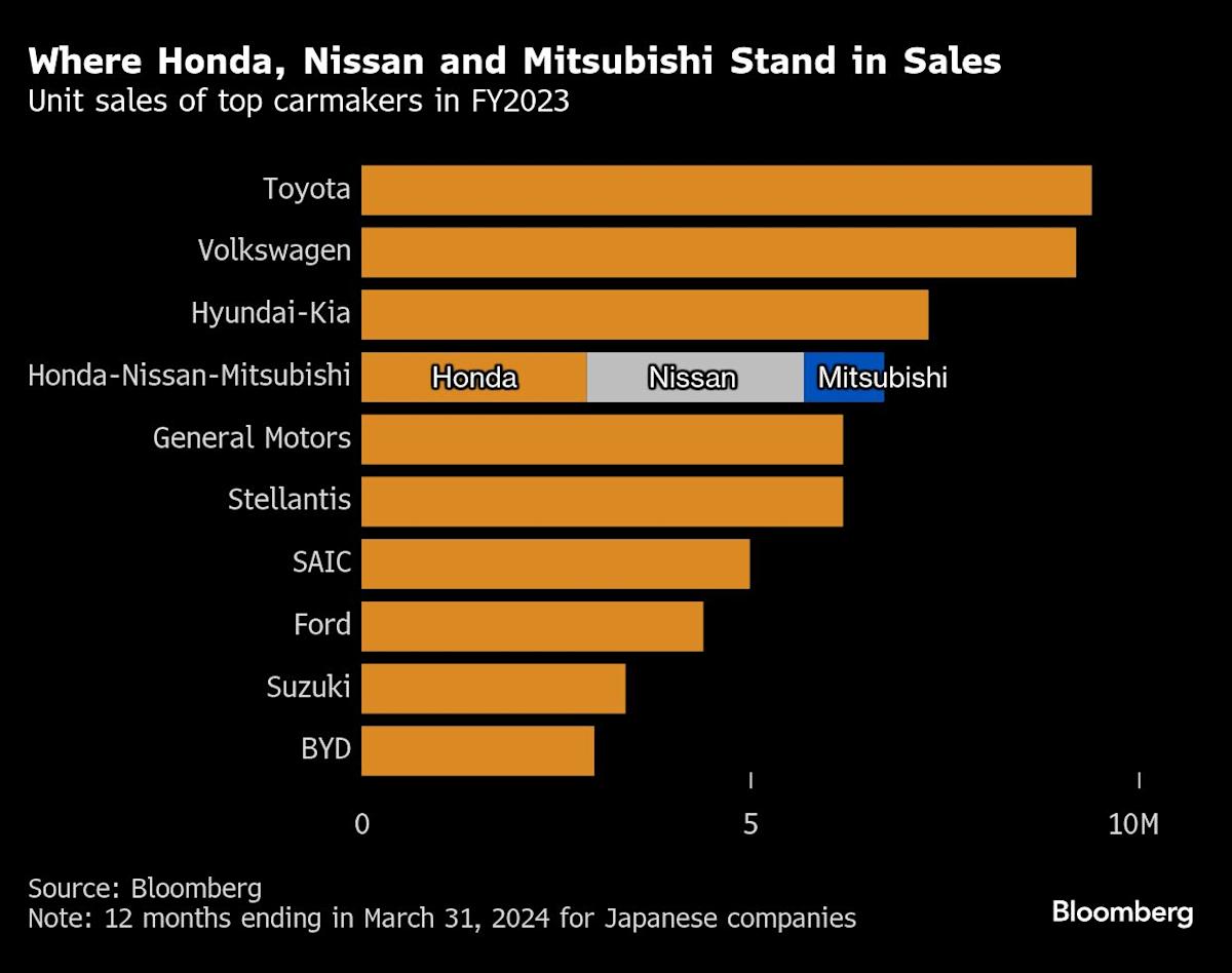 “Honda and Nissan merger synergies will take time to emerge if a deal is concluded in 2025,” Tatsuo Yoshida, a senior industry analyst for Bloomberg Intelligence, said in a note. “Nissan may get relief from its financial strain, while Honda’s near-term benefits may be limited.”