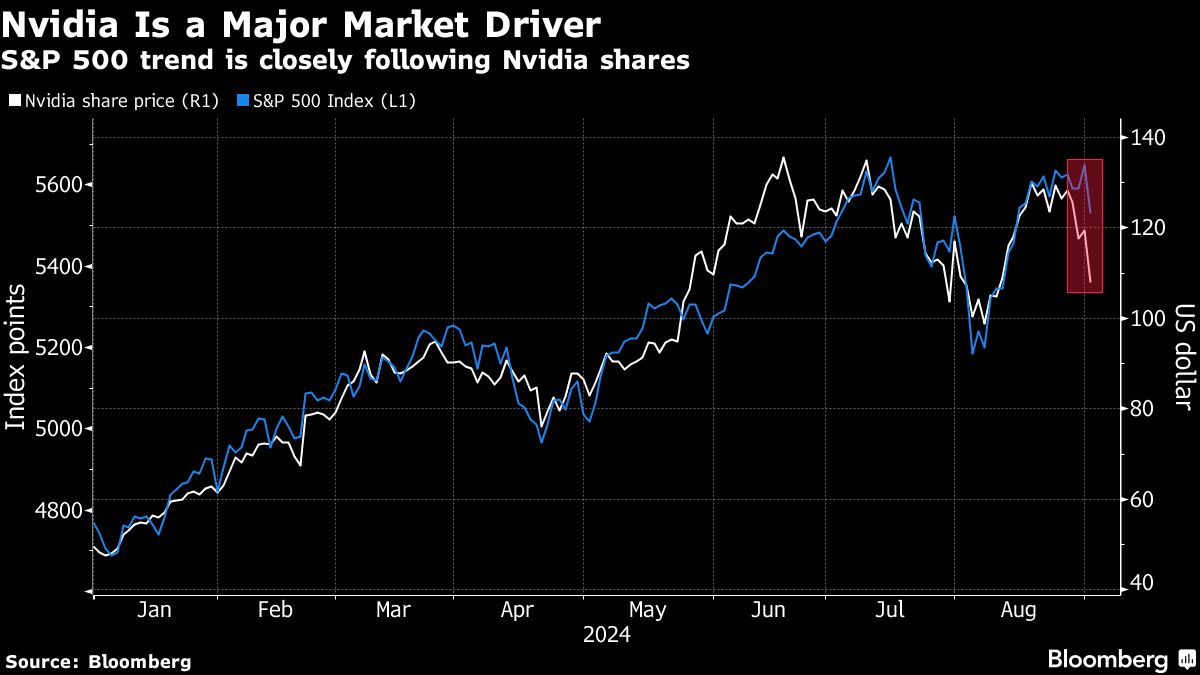 Nvidia may only be the third-largest member in the S&P 500, with a weighting of 6.1% in the index, but it has become the benchmark’s main driver this year. The chipmaker’s share price has been dictating the trend for the broader market since January and its rout this week doesn’t bode well for the index.